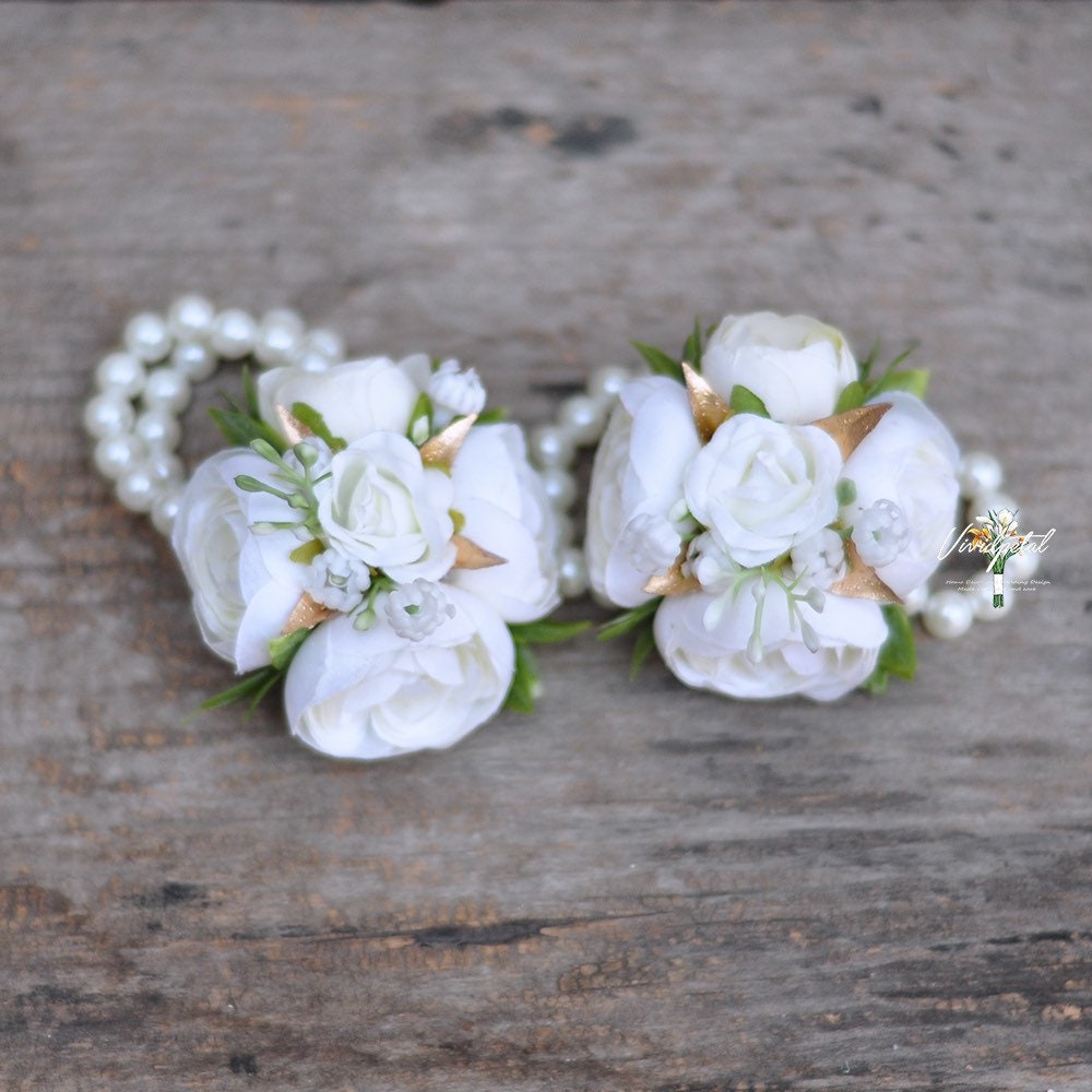White Rose Gold Corsage Prom Corsage Wristlet Mother Of The Etsy