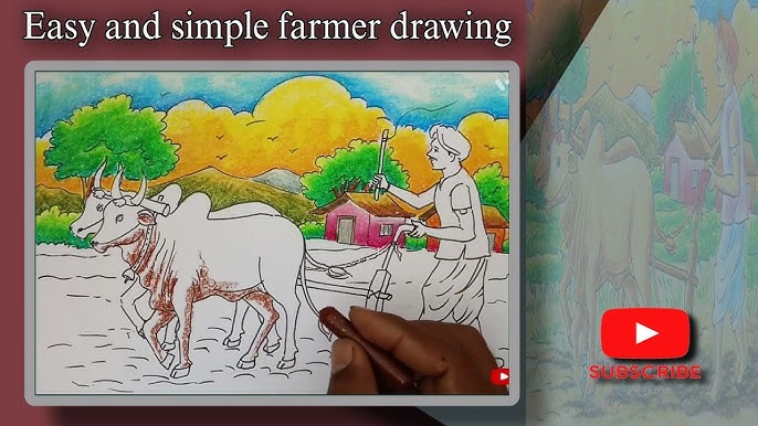 Farmer Drawing Farmer Drawing Easy Step By Step Village Scenery Drawing श त त क म करण र श तकर Youtube
